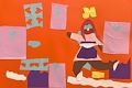 I love the hearts and the person really looks like their walking in snow. The Orange is pretty. It's your dad's favorite color. You sure know how to use scissors. Let's see some more of that. Love grandma Lisa