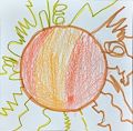 I love this picture!! It reminds me of the planet Saturn!! Or maybe the bright sun!! Have fun in Art class! Love grandma & poppa