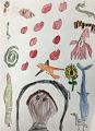 Love this newest art work of yours!! Lots of colorful creatures and a picture of you!!! Keep enjoying your great art class!! We love you very much!! Grandma and poppa. Xoxo