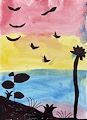 Oh wow look at that pretty sunset. Those birds are happy