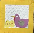 I like Momma’s eyelashes and her colorful beak and red beard. Her chicks look pretty content and happy!