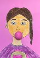 Is she having a chewing gum?
