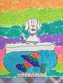 I love this one. The fish is so colorful and the dog looks like Gabby with the tongue sticking out. Good job Maya. Your art work is amazing. Aunt B