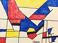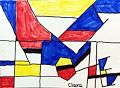 Are you studying the style of Piet Mondrian? Your colorful piece reminds me of it, but you put your own spin on it….. so it is an original Clara!