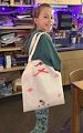 Your tote bag looks pretty fancy with flowers and the bow. I like the way that you are modeling it. Good work, Clara!