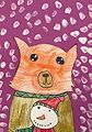 This looks like a balloon head with hair, snow on the eyebrows and a snow flake over the mouth and a X for Christmas. Way to go!!