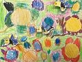 Miles ! I Adore your art work !! Look how big & beautiful your flowers are … they are like happy sunflowers , which make my heart sing ! The three birdies on wing , following each other .. I love the way you filled your page completely with natures bounty So Glorious!! You have talent galore ! Love , your Nonna ;)
