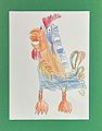Oscar, this is a great rooster!!! Did you think about my chickens while you were drawing it? I absolutely love it. Much love and love you to pieces!! Bevie