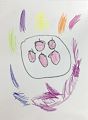 Hi, Harbour. I knew the second I saw this artwork that it was 5 nice red apples, even before I read the name of the project! So you really captured your subect!! The white plate looks just like the ones your grandma and I eat from every day. It adds scale, and the circle turns your project from art into a sacred "mandala". (Ask mom or dad what THAT is.) Around the plate, the images are a little more "ABSTRACT" (Hooray for your creativity!) Ask dad or mom or your teacher the meaning of "abstract". I see them as slices of fruit. The yellow ones are lemon slices. They make my mouth water! All in all, this artwork, and this display of the skills of your inner artist, make me feel good all over. And I wag my tail! I love you, Poo' Boi