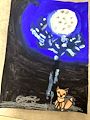 Wow! This painting shows the emotion on the faces of your creatures. I think they are saying-Oh no! What are we going to do? I hope they have a safe landing! Love all the colors in the background too! Keep up the good work little artist! Love you!