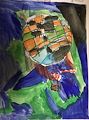 Mason, I love you how used lighter and dark shades of the same color. This looks like a landscape portrait with grass, sand, and ocean! You are quite the artist! Love, Dad