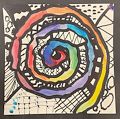 I really like the colors you used in this art piece, it reminds me of a starfish just drifting in the sea. The frame is very cool,too! You blended nice colors together. Nice work!