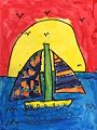 Kegan, I love this recent painting. It looks so great. The trees are very realistic and the sun in the background is wonderful!! Great job!