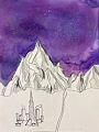 Connor - this picture is amazing. It looks like the mountains in Arizona, with a city like Chicago. I also used to color the sky a purple color when I was as young as you. I love your imagination when you are drawing your amazing Art!