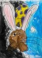 Nice rabbit drawing, I like him. You're gonna have to tell me the story about this one, he looks like he's got a big 'ol dinosaur egg there!
