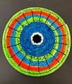 Compact, even weaving around the centre and a colourful, beautifully decorated border. Great work Ellie!
