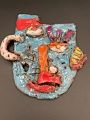 A really good clay version of your cardboard mask. It is difficult to shape, attach and glaze each individual component - I think you’ve done a great job all considered! I especially like the colours.