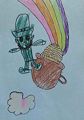 He found the pot of gold at the end of the rainbow!! Wonder if he’ll share the gold coins!