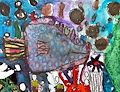 What a colorful picture. His face is so cute with the yellow heart!