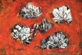 Love the black accents of the veins on the leaves which shows up so nicely against the red background. Nive fall feeling.