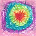 Ben. I love this colorful artwork. I see different things when I look at it. Sometimes I see a glazed doughnut sitting on a colorful platter. Sometimes I feel like I am walking into a rainbow tunnel. Your art always makes me feel happy.