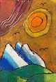 Love the color combinations! I like the way the black background shows through the sky. It gives texture. Good job.