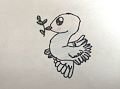 I like your dove with the olive branch in his beak. I like the detail in the tips of his wings that make him appear to be in flight. Well done. Love, Grandpa