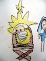 What a joyful picture of Baby Jesus, wrapped in swaddling clothes! I love His halo and the Star of Bethlehem, and you did a wonderful job creating the perspective from the front of the manger. Good work ??! Love, Nammaw