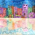 Oh Wow! I love the buildings. What an awesome and colorful cityscape. The faces on the buildings are adorable and so creative. The sky is perfectly blended and the stars are done so well. It's like the city is coming to life. You did a fantastic job on the building reflection as well. It's all so colorful. I can feel your city really come alive.