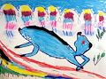 Violet! This is the cutest deer! You did a great job on the legs and the shape of the deer's body. I like how you colored the animal's spine. He looks fantastic up against your colorful background and I can almost feel him galloping down that snowy hill. Keep practicing your talent, my little arteest!