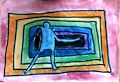 Ellen: This is such a wonderful figurative drawing. Your figure touches all the colors in your striped rectangle. I can feel the movement your person creates using outstretched arms and legs.