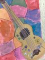 Lovely. Nice use of larger scale on your guitar to make it stand out against your background. You decorate things well!! (Your guitar and your blue and white vase). I think they “tell stories!” You are my favorite young artist!