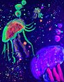 The jellyfish are so colorful and look beautiful. They make me smile.