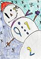 I love your snowman he is so cute and colorful, looks like he is juggling something. Very interesting, also resembles a snow bear, Nanna loves art, fun times ??????