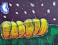 I love how you have shaded the pumpkins so they are lighter color at the top, highlighted by the moon. Also your midnight sky is so dark that the stars really shine. A nice piece, Connor.