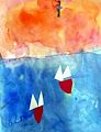 Roman I love the colors of your painting. Grandma going to guess it is an Easter Egg that fell of the stand? Or it is a very colorful fish that is swimming with the other fish? Anyway good job again. Keep up the good work.