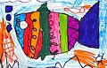 My Nonan the artist. Love the tri-colored fishy. Might have fish for dinner.