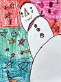 Love this snowperson with a big, orange mouth. Very creative, mi amor