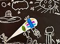 Keep up the good work Roman. This one sure is colorful, I am guessing you drew a ghost that has boxing gloves on and when he used the punching bag he turned all different colors. Love you Roman!! Grandma Marlene