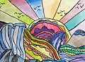 thanks for sharing your beautiful art. the multiple different shades of color in the background really make the "ribbons of green/blue" stand out.
