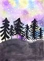 Claire, I love your “Norther Lights”! The use of black for the trees really makes it feel like the nighttime setting. Seeing the northern light in Iceland with my sister is one of my favorite memories. When you are older, let’s go see them!