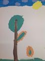 I especially like your tree trunk, because it has a lot of texture. Good job!