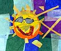 You brightened our gloomy day with your sunny masterpiece! Is that a tissue paper collage? The sun’s sunglasses look like yours! You are the best artist!