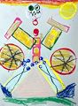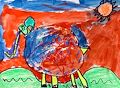 Good to see your works of art appear online Owen!! Although this work is not titled, it looks like you were using ink and stamps and cut outs to make a train scene ! Great job Owen!!