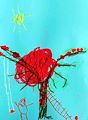 What an interesting piece of artwork! Looks like someone’s having lunch ! It’s legs are your favorite color! Nice work “O”??