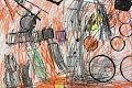 I love your use of different mediums, and the shadow and pottery pattern are excellent details! Great work!