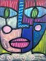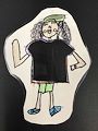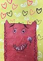 Looks like a happy friendly space alien has entered the art world. Very creative Izzy! I like the hearts on front & grippy hands. Great job with the color blending.