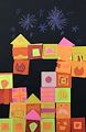This artistic creation reminds me of your magnetic blocks! I love how each square expresses something like a kitty outline, sad face, hearts, & shapes. Great job!
