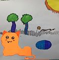 Awwww, what a colorful summer day with a happy kitty in the bright sunshine. You have a wonderful imagination Izzy.