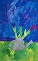 Hi Owen, another interesting painting! Not sure what your thoughts are. I think it looks like the base has a grumpy trolls face with bad teeth but has beautiful flowers growing from his head for hair, ha! What was your idea? Lets discuss.